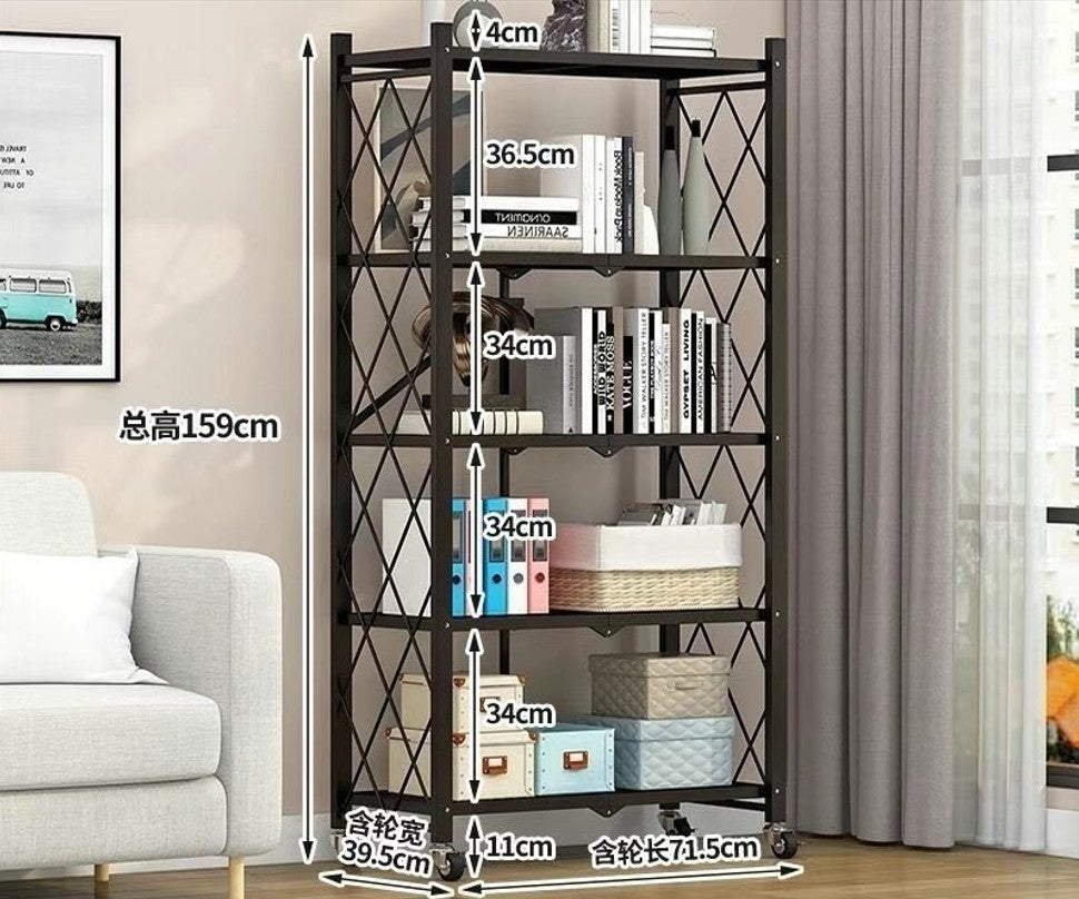 Foldable 5 Tier Kitchen Trolley Shelving Unit with Wheels