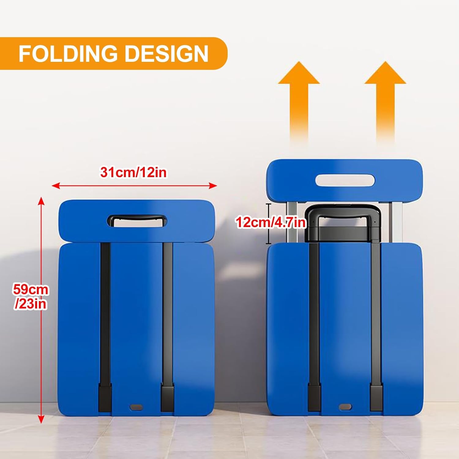 Folding Rolling Kitchen cart, Heavy Duty Luggage Rollin Cart, Metal Utility Cart, for Luggage, Travel, Moving, Shopping(Blue)
