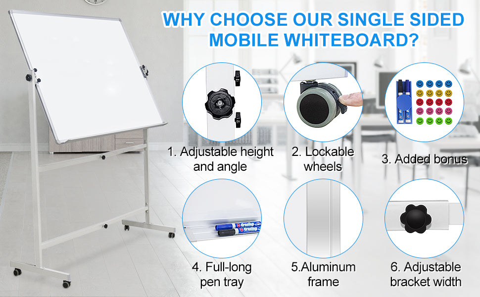 Magnetic Mobile Whiteboards are a vital tool for presentations & meetings. These mobile whiteboards are ideal for use in the classroom, office, conference rooms or travelling presentations.
